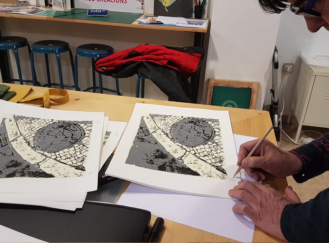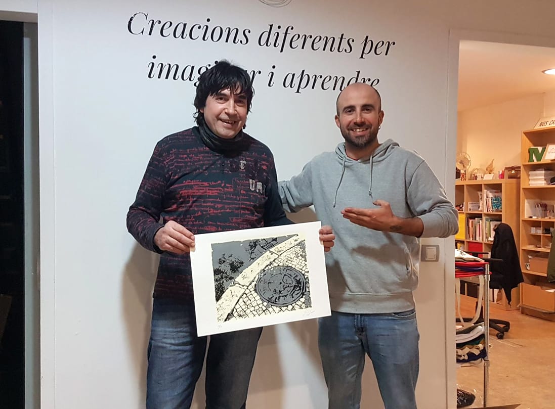 El Sebastià tenia les idees clares, sent pintor i ja havent treballat alguna vegada amb la serigrafia, ja venia amb els deures preparats. La seva idea era reproduir aquesta obra original, i fer una petita tirada de la mateixa serigrafia. Així després d’haver analitzat l’obra, vam decidir treballar a tres colors, per ser la més fidel possible a l’original.